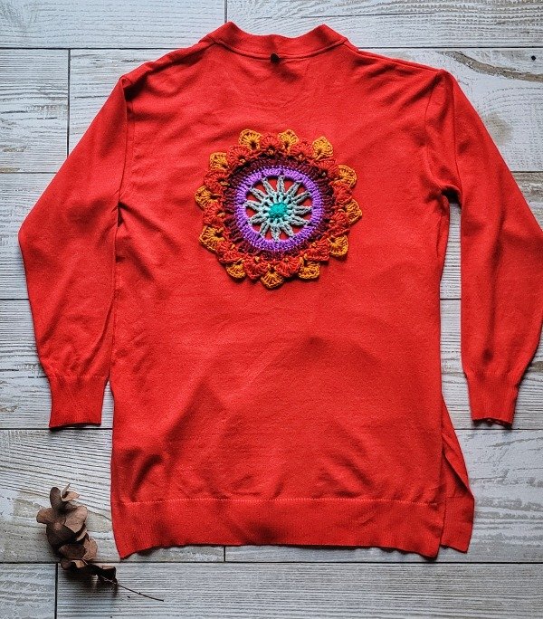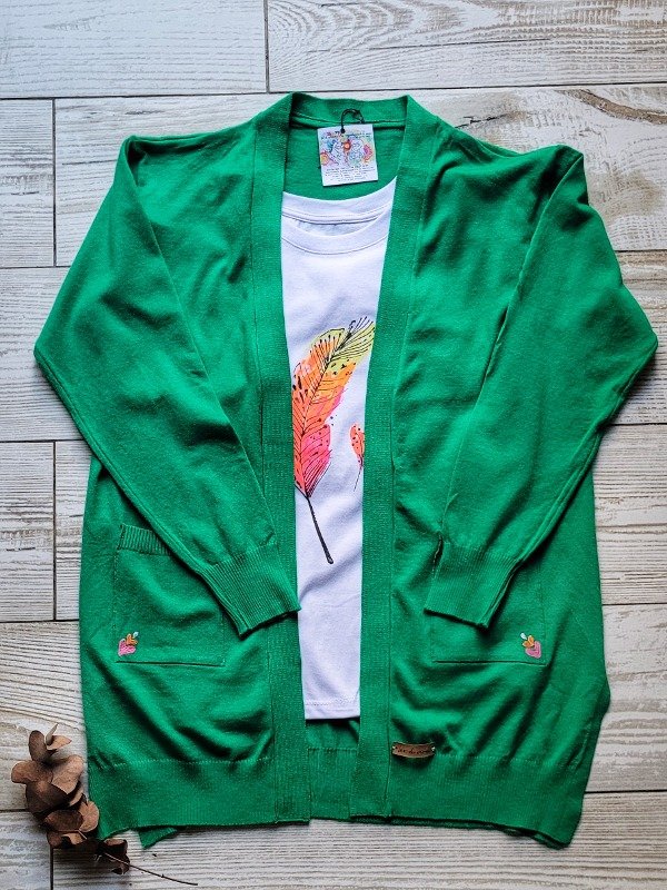 Sacón largo de bremmer con aplique tejido a mano y bolsillos pintados.