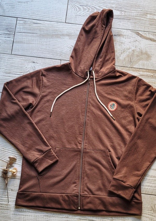 Campera de algodón rústico liviano.ideal medio tiempo.Disponible en negro (talle 1) con diseño en las mangas blanco más detalle multicolor. Cierre y cordón en color blanco.