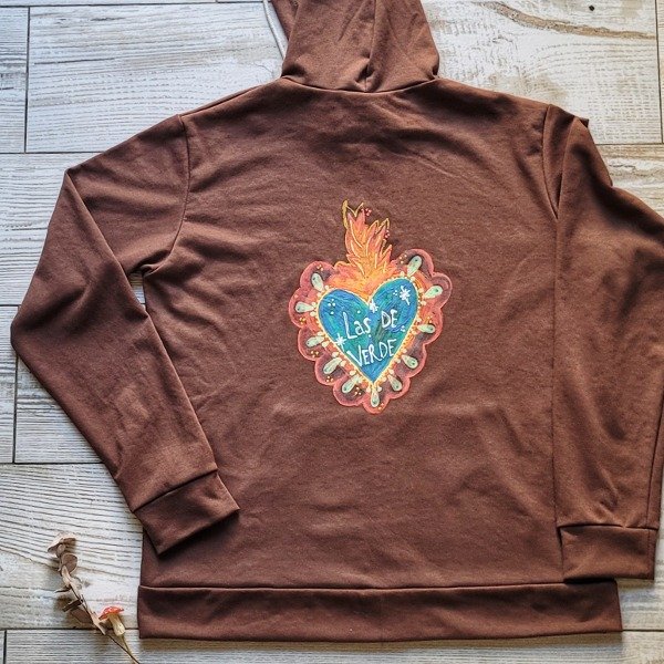 Chocolate (talle 2) con diseño de corazón en la espalda.