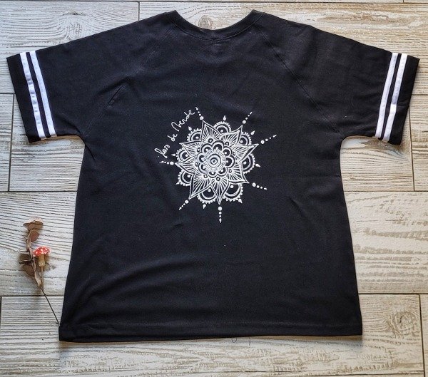 Remeron de algodón con detalle en manga y estampa en frente y espalda.